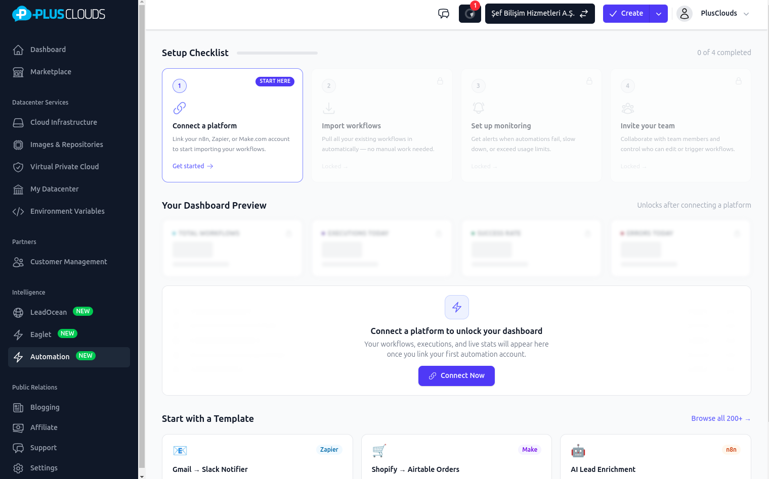 Contains 2-3 ecosystem links redirecting to PlusClouds services.